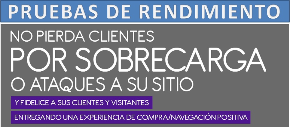 Pruebas de Rendimiento: Las pruebas de carga y estrés, tienen por objetivo identificar errores, defectos y cuellos de botella (entre otros), en las implementaciones tecnológicas de negocios (páginas web y/o aplicaciones) de nuestros clientes. Durante el desarrollo de los proyectos, es posible identificar el problema que afecta el rendimiento y posiblemente la disponibilidad de los sistemas bajo análisis.