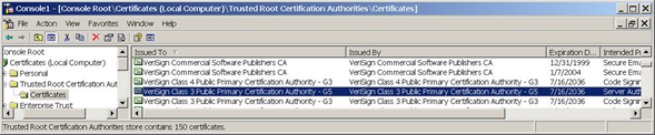 Issued to: VeriSign Class 3 Public Primary Certification Authority - G5
