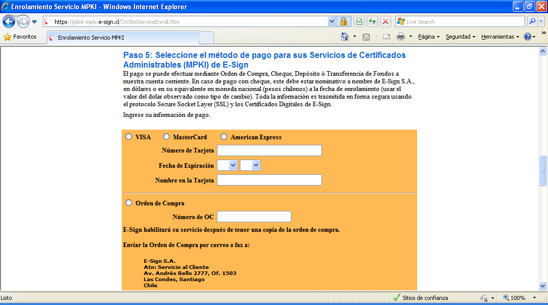Orden de Compra: la Orden de Compra debe ser enviada al correo validacion@e-sign.cl.
