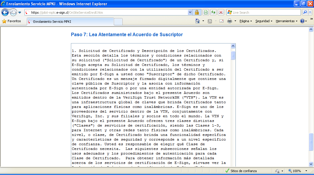 En este paso también deberá hacer el ingreso de una Frase Secreta, la cual será requerida al momento de hacer la descarga del certificado de administrador. Si usted olvida esta Frase Secreta, no podrá descargar su certificado de administrador posteriormente, por lo que se recomienda que esta sea guardada en un lugar seguro.