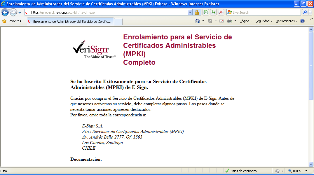 Una vez concluido este procedimiento, la solicitud debe ser validada por el departamento de validación de E-Sign. En caso de requerir información, esta será solicitada al contacto técnico registrado en la solicitud.