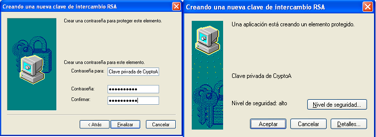 Un mensaje que indica que se esta creando una nueva clave de intercambio RSA aparece. Haga clic en el botón Nivel de Seguridad y póngalo en Alto.
