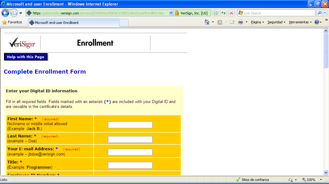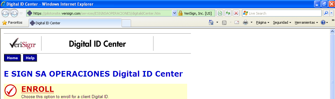 Paso 1: Ingrese en el link que le envió su administrador, usted verá una ventana como la que se muestra a continuación. Aquí debe seleccionar la opción Enroll.