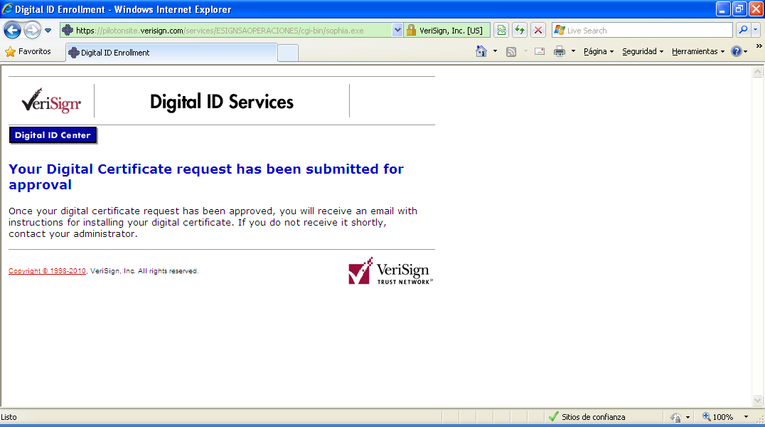 En este momento debe esperar que su administrador valide la solicitud de certificado.