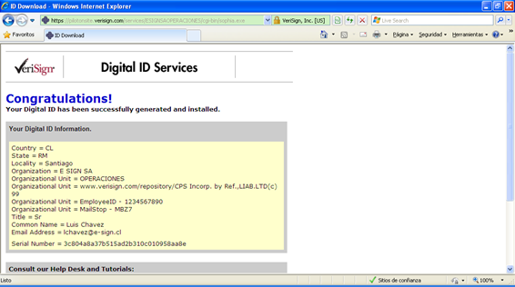 Una vez que su certificado digital esté instalado, verá una ventana como la que se muestra a continuación y que contiene los detalles del certificado.