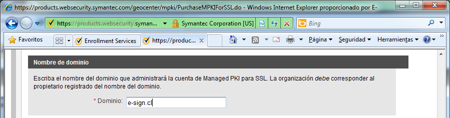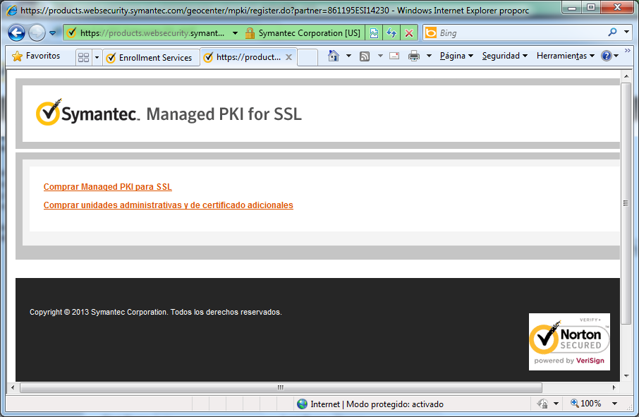 Haga clic donde dice Comprar Managed PKI para SSL para ir a la página de enrolamiento.