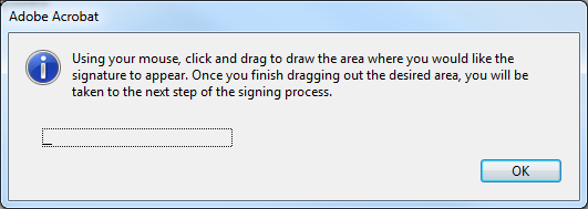 Haga clic en Firmar Documento y se mostrara una ventana como la siguiente, que indica que utilice el cursor de su mouse para seleccionar el área del documento donde va a poner la firma.