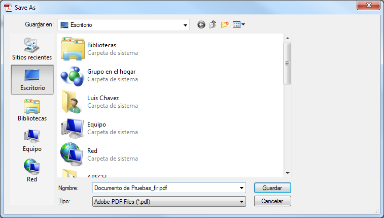 Haga clic en el botón Firmar y elija una ubicación donde guardar el documento firmado: