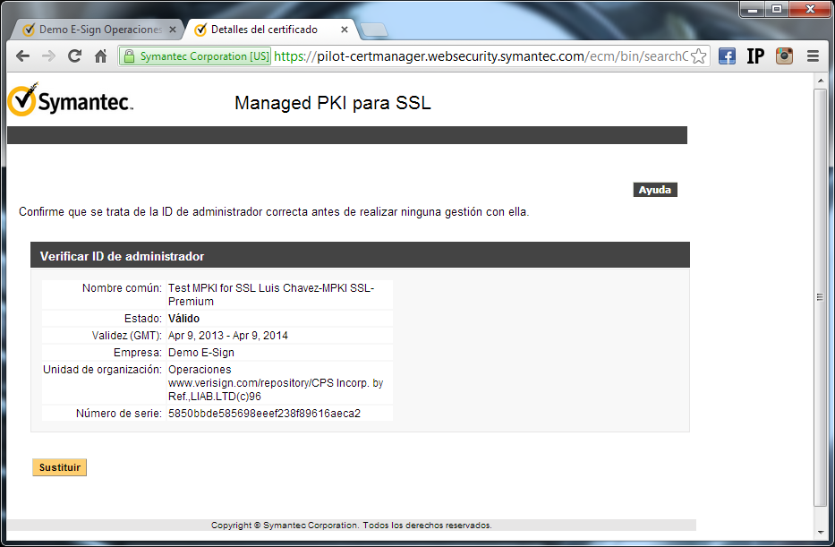 El remplazo de un certificado de administrador, podría tener costo. Para obtener mayores detalles, escriba a servicioalcliente@esign-la.com.