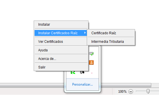 Haga clic en aceptar para continuar con la instalación del certificado Intermedio. En la bandeja de tareas de su equipo, haga clic con el botón derecho sobre el icono del instalador.