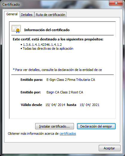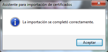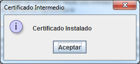 Seleccione la opción Instalar Certificados Raíz > Intermedia Tributaria, usted verá un mensaje como el que se muestra a continuación: