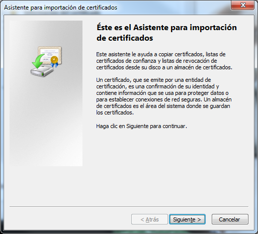 Posteriormente se abrirá el Asistente de importación de certificados, haga clic en Siguiente