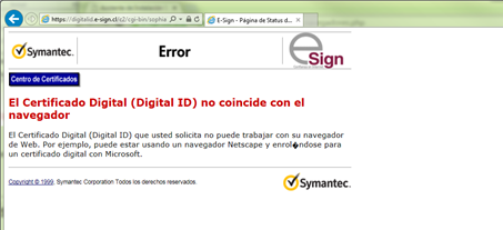 Mensaje de error: El Certificado Digital (Digital ID) no coincide con el navegador.