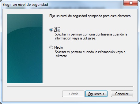 Seleccione Nivel de Seguridad, y seleccione Alto, luego haga clic en Siguiente