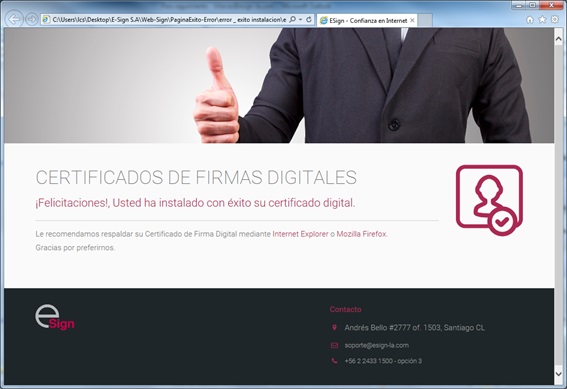 Una vez que el certificado sea instalado, el usuario verá un mensaje como el que sigue.